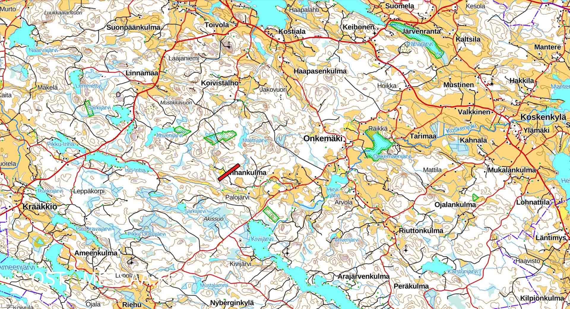 Saavutettavuus ja tieyhteys: Myytävälle metsätilalle on hyvä tieyhteys. Opastus alkaa tieltä 301 Vesilahdesta Viialaan päin noin 14 km kohdalta, josta käännytään oikealle Kehron- ja Onkemäentielle, edelleen länteen Inhankulmantietä pitkin noin 2,5 km. Kohteen osoite on Inhankulmantie 250, 37420 Vesilahti.